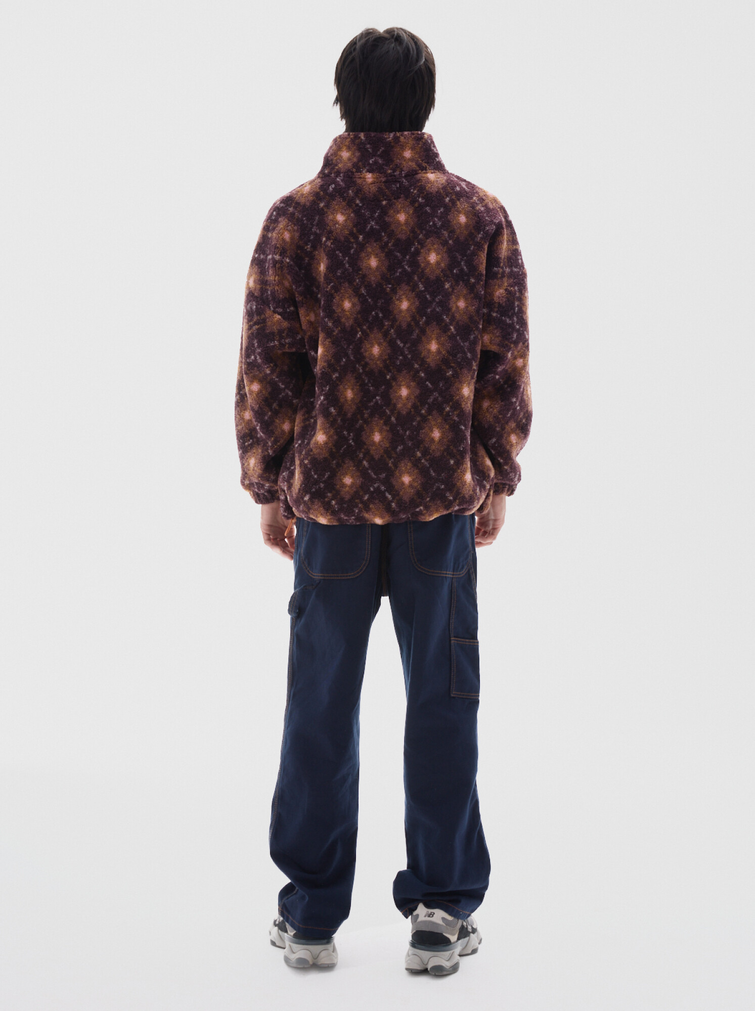 Buzo de sherpa fullprint, con medio cierre, bolsillos laterales delanteros y bolsillo ojal en el pecho.