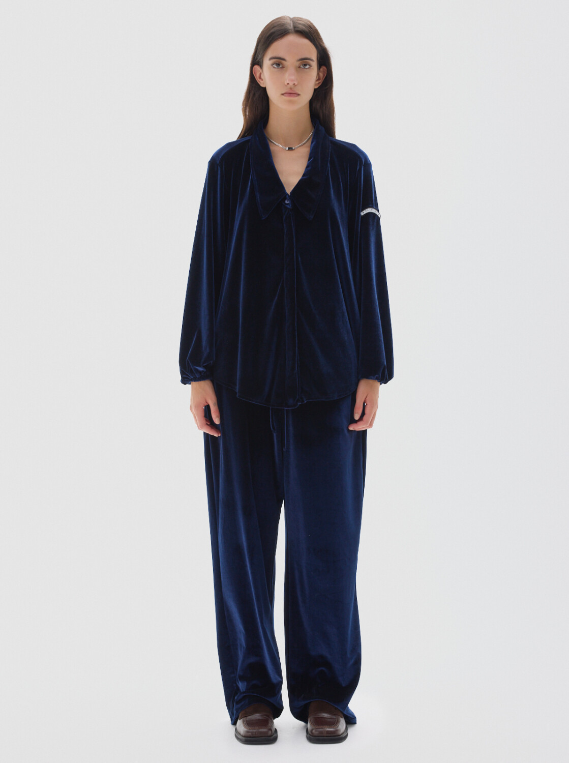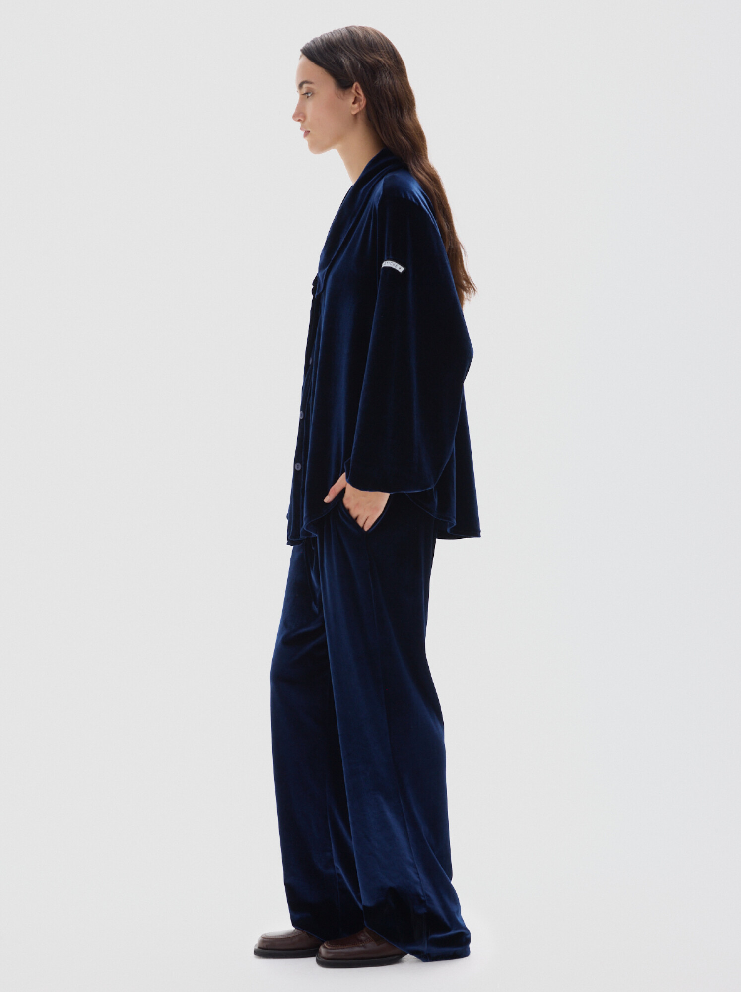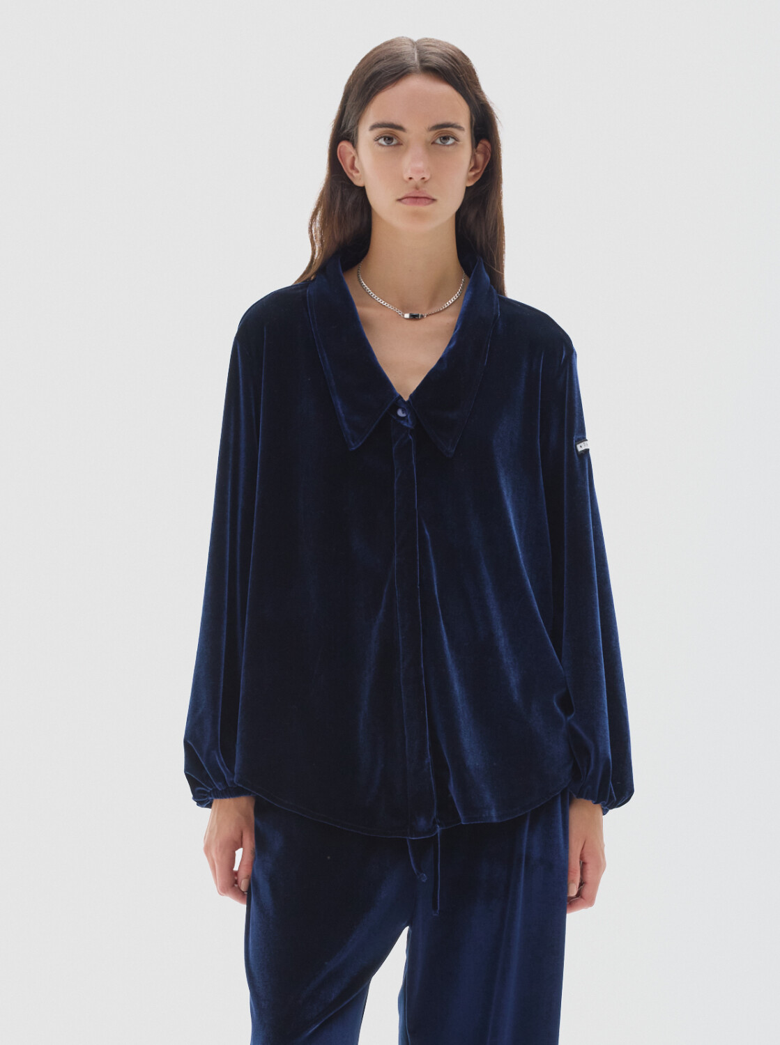 Camisa de velvet con escote en V y manga larga.