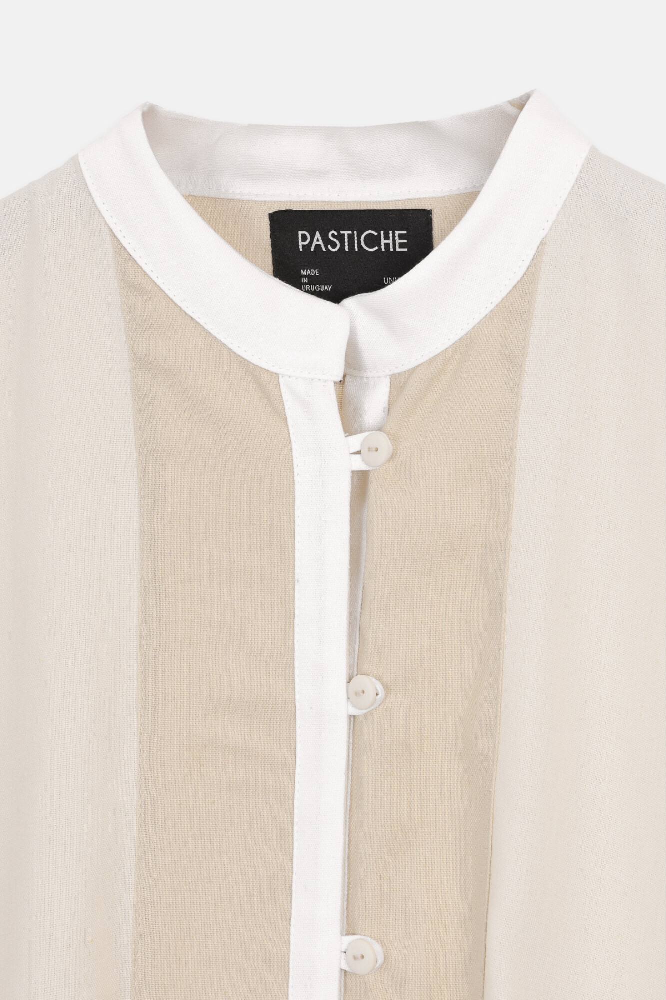 Cuello mao, abotonada adelante.