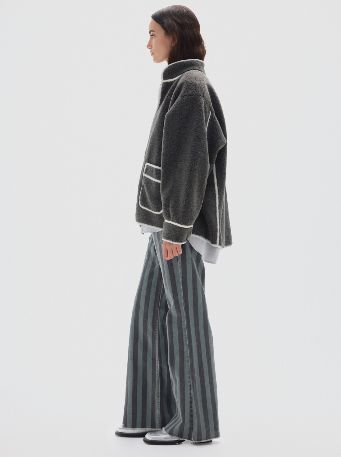 Abrigo de sherpa con vivos a contratono.
