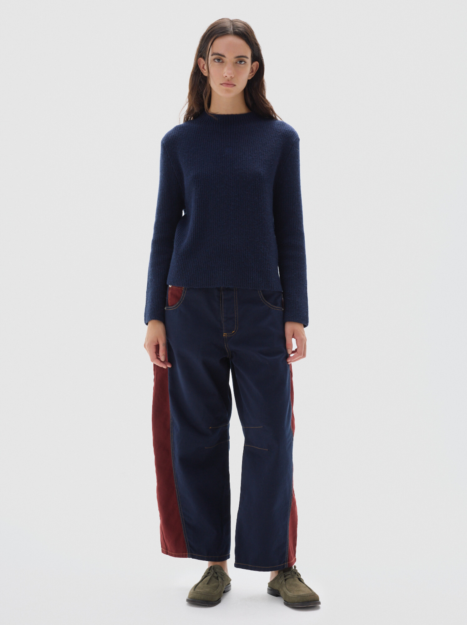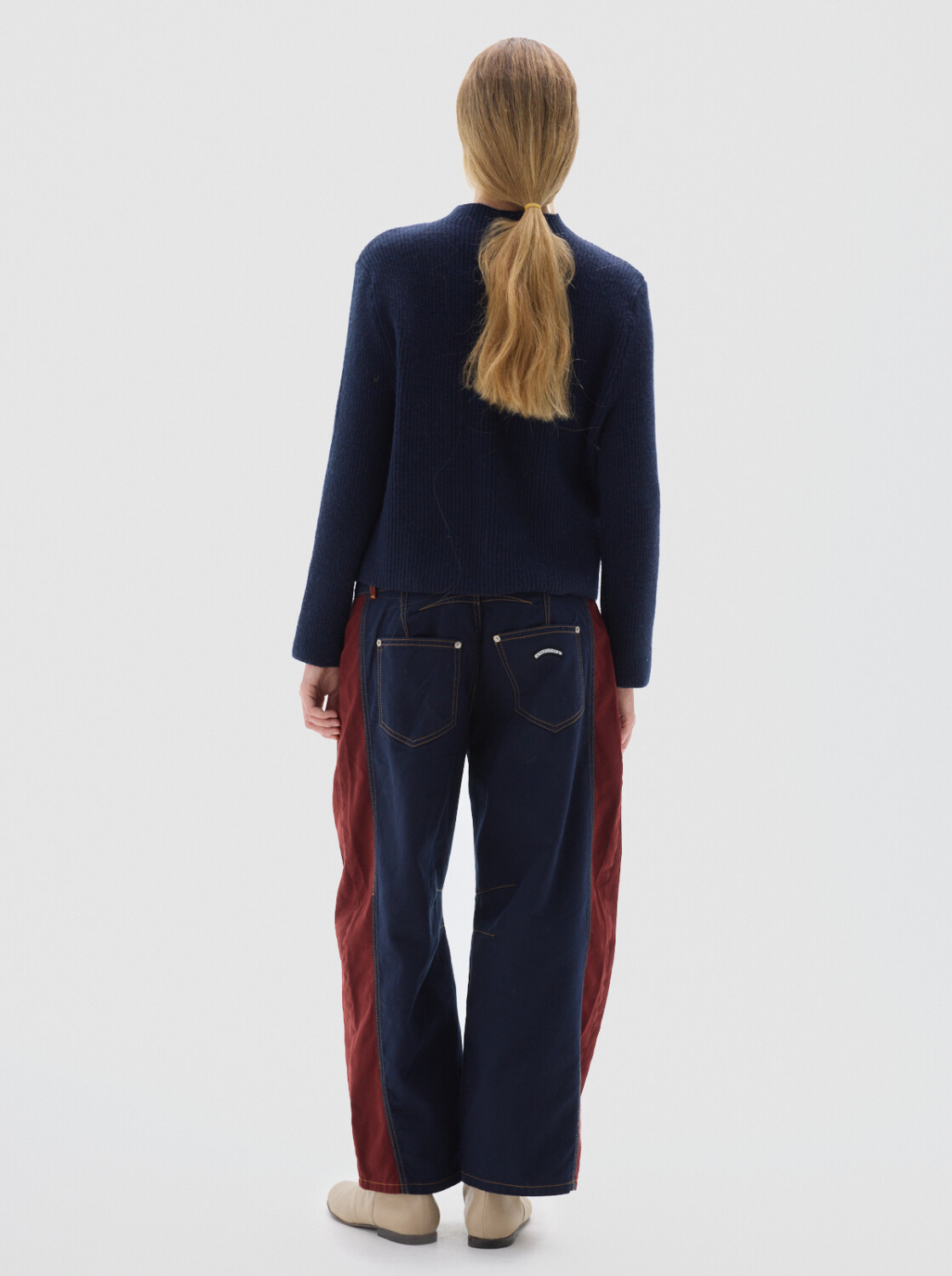 Pantalón barrel colorblock de brim Bull marrón y negro, de pierna ancha que se estrecha hacia el tobillo.
