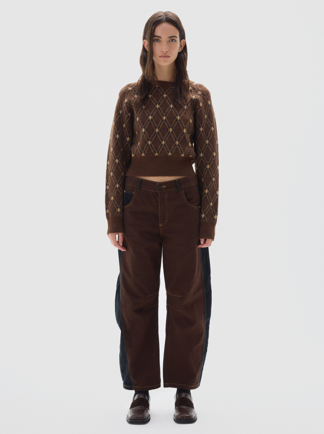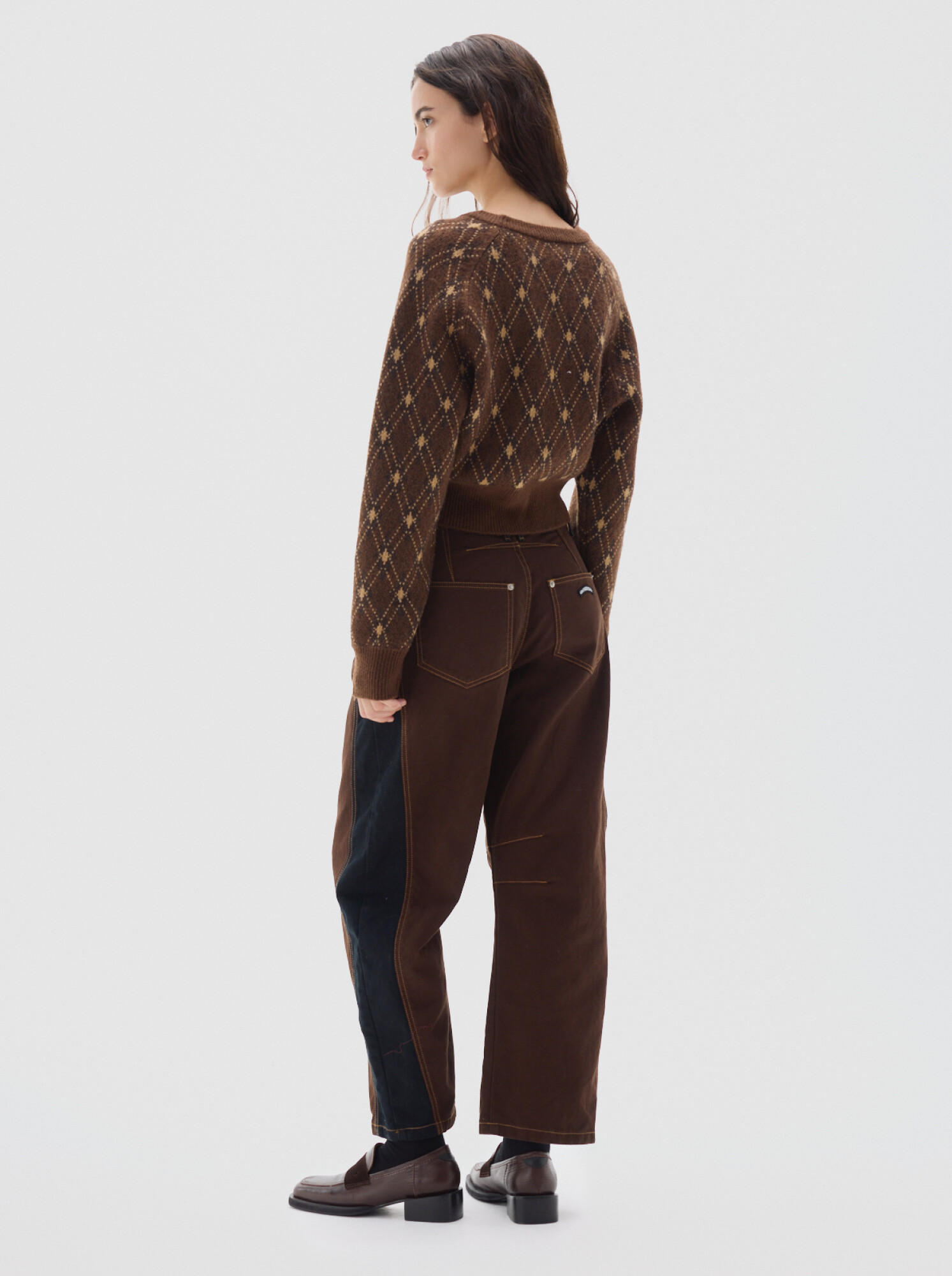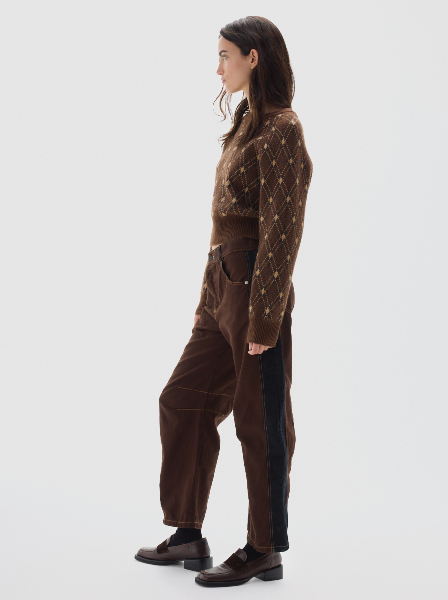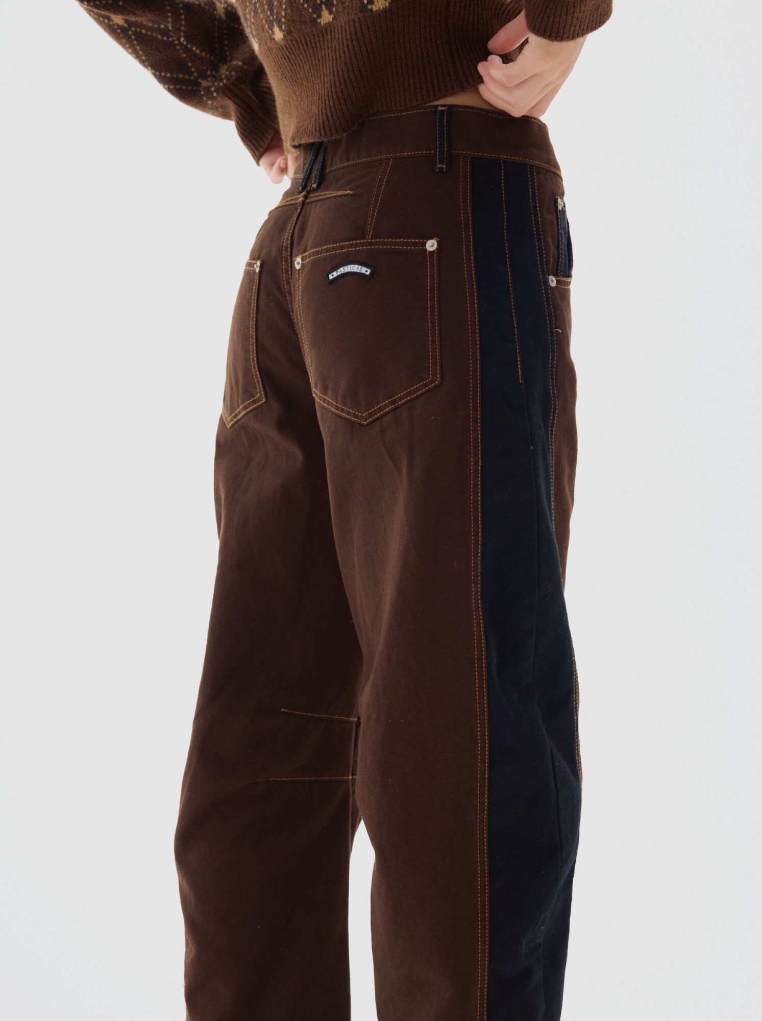 Pantalón barrel colorblock de brim Bull marrón y negro, de pierna ancha que se estrecha hacia el tobillo.