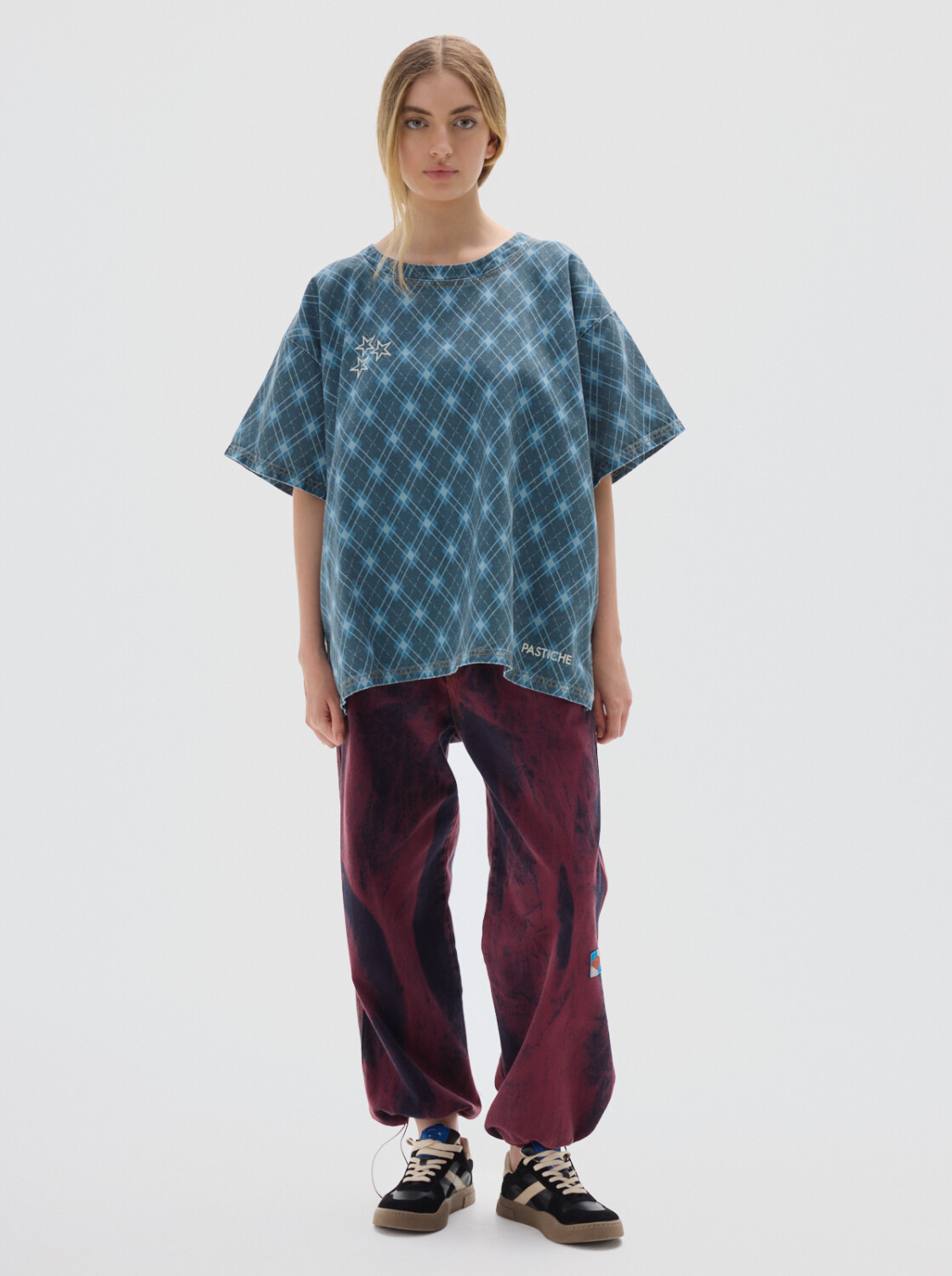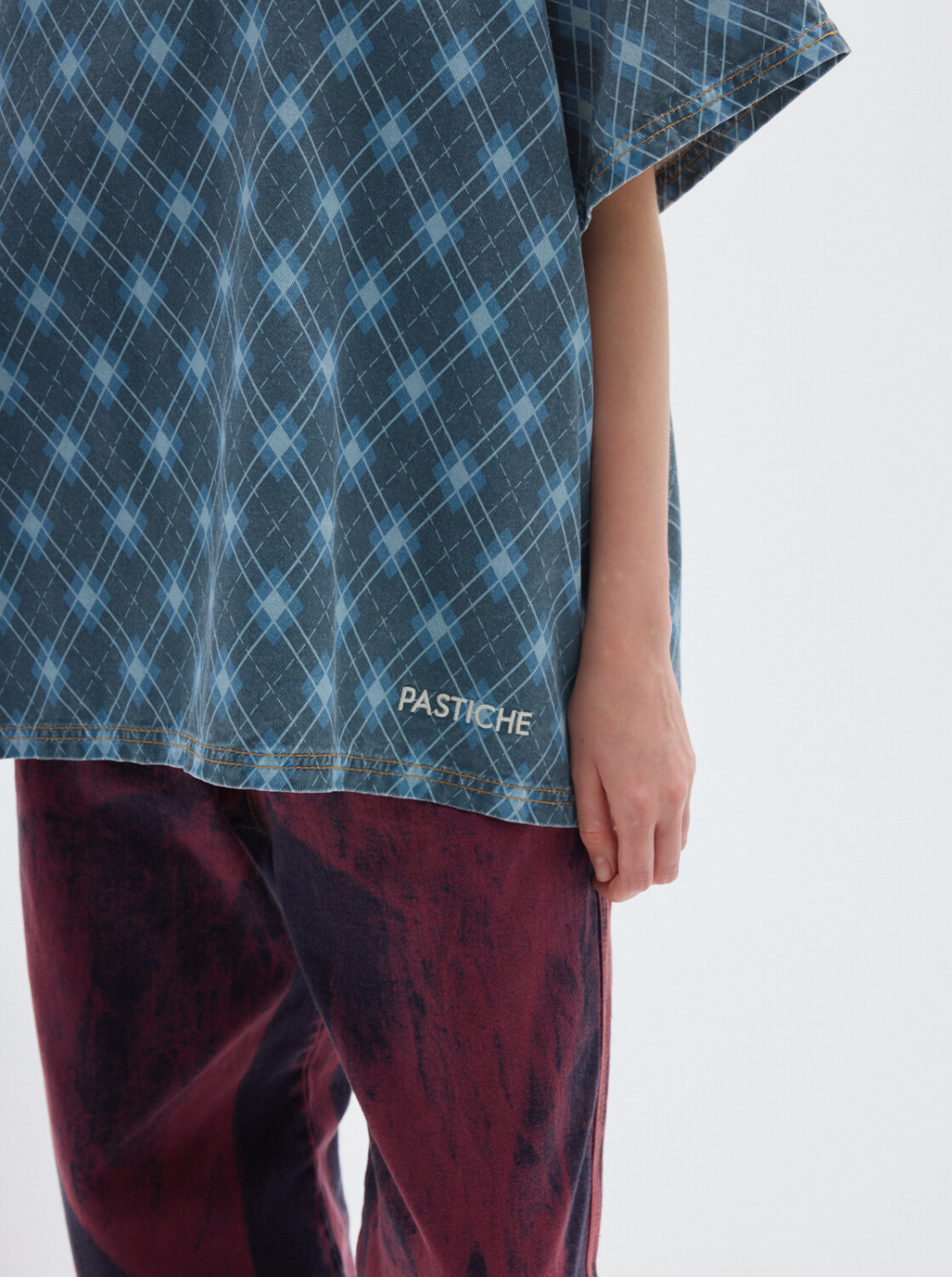 T-shirt fullprint en denim, fit oversize, con cuello a la base.