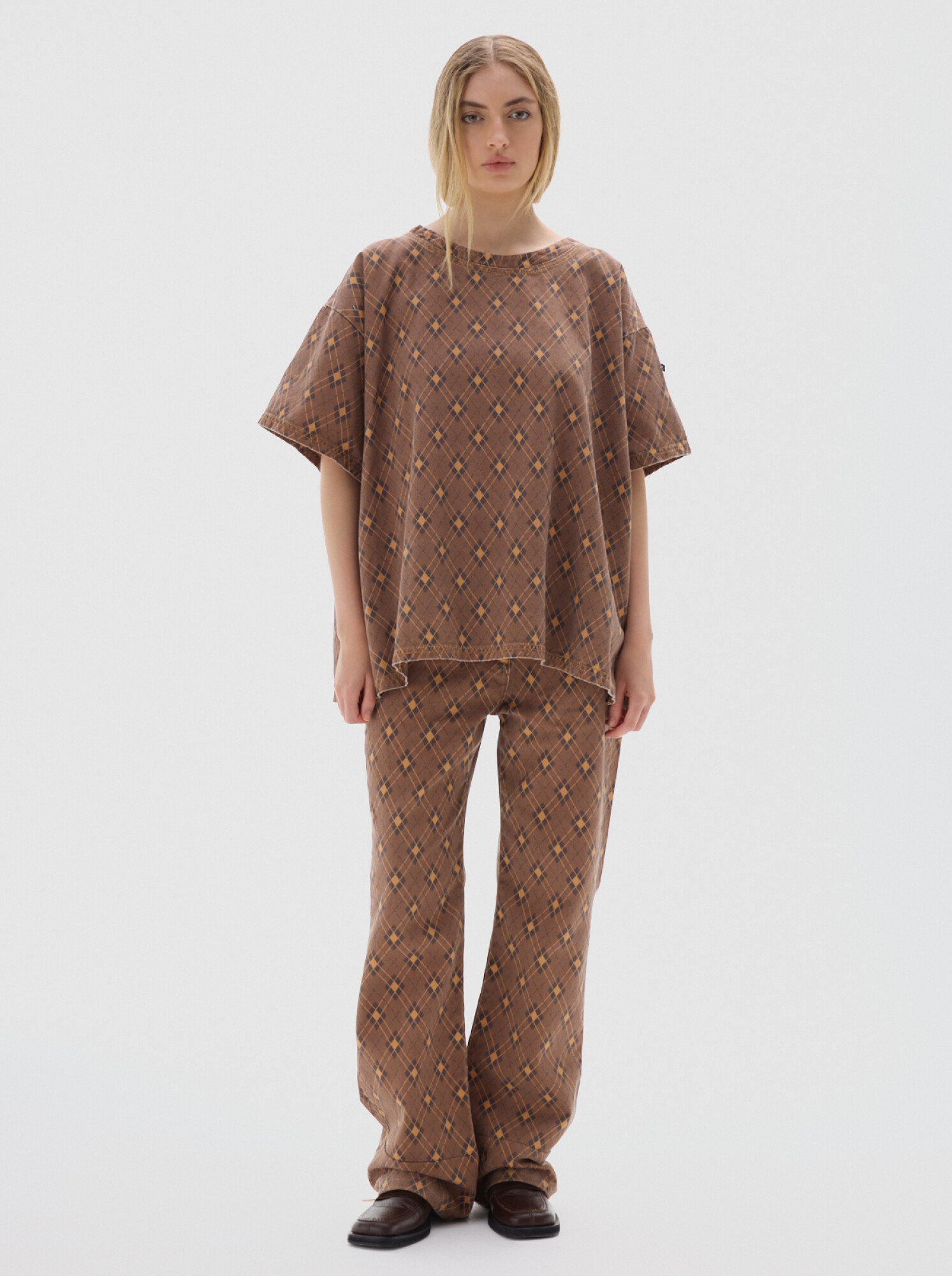 T-shirt fullprint en denim, fit oversize, con cuello a la base.