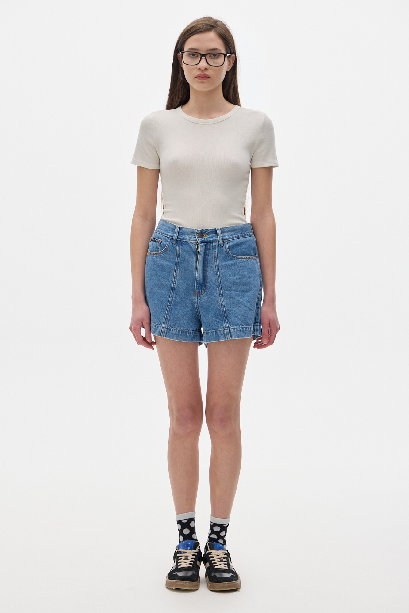 T-shirt al cuerpo de manga corta y cuello redondo.